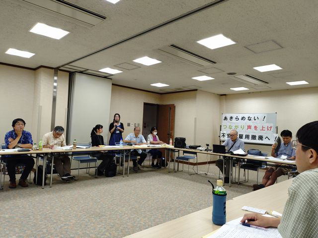 国会で取り上げられたアウトドア用品メーカー、パタゴニアの雇い止め訴訟和解報告など共闘関係のユニオンの報告も続き、時間いっぱいまで、労働法が守られていない職場をどう変えるか、と議論は止まらない。
