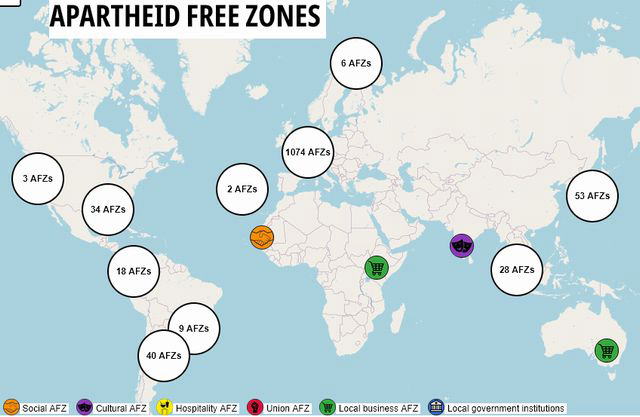 アパルトヘイトフリーゾーン(AFZ)キャンペーンは、パレスチナ解放をめざすBDS(ボイコット、投資引き揚げ、制裁)運動の一環で、正義と平等を求めるさまざまな取り組みが結集する空間を世界中に広げることをめざしている。