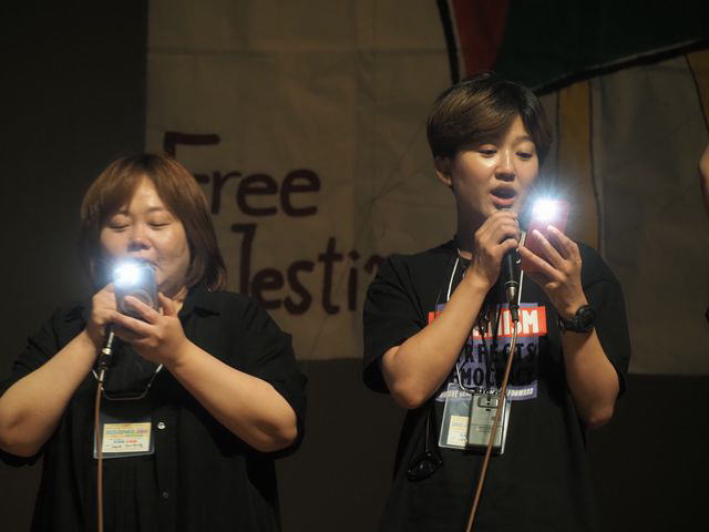 2025ZENKOに参加した、韓国女性団体連合のヤンイ・ヒョンギョンさんとイム・ソニさんの報告は、歴史的な広場の開催と、ユン大統領の罷免を勝ち取ったことへの自信と希望に満ちあふれていた。