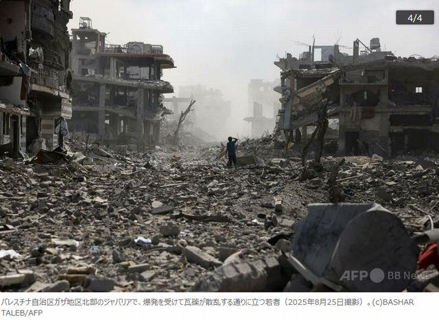 ガザ市だけでなく、その北のガザ地区第3の都市ジャバリアの街は完全に破壊された。「避難しようにもどこに行けばいいのかわからない」と住民は言う(8/27DropSiteNews)。南部に行くにも、深刻な燃料不足で車での移動費用は2000シェケル(約9万円)を超える。避難には移動手段とともに食糧やテントなどの費用が要る。多くの住民は避難したくてもできない。「たとえここで死ぬことになっても、離れない」。飢え死にするか、爆撃で殺されるか、そんな選択を迫られているのだ。