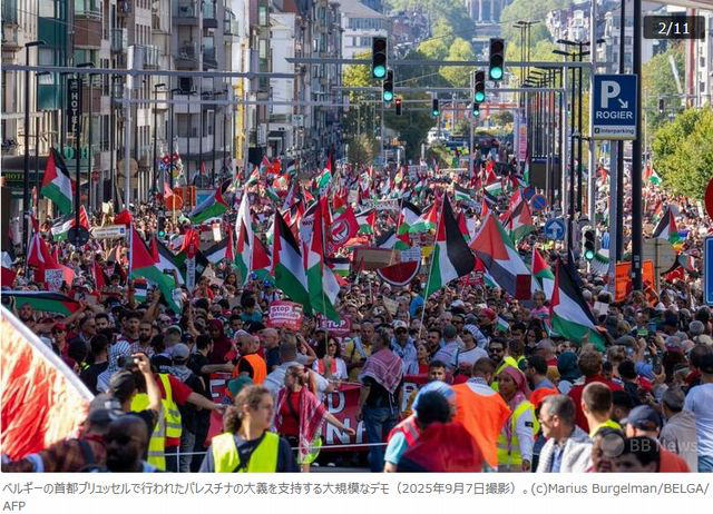 各国政府を突き動かしているのは市民の闘いだ。9月7日、ベルギーの首都ブリュッセルでは12万人のデモが行われた。人口120万人超。その1割がパレスチナ支持の行動に参加したことになる。27歳の学生は「すべての学生やあらゆる世代の人びとがこの都市で抗議することが本当に重要だと思う」と述べている(9/8AFP)。ブリュッセルにはEUとNATO(北大西洋条約機構)の本部があるからだ。