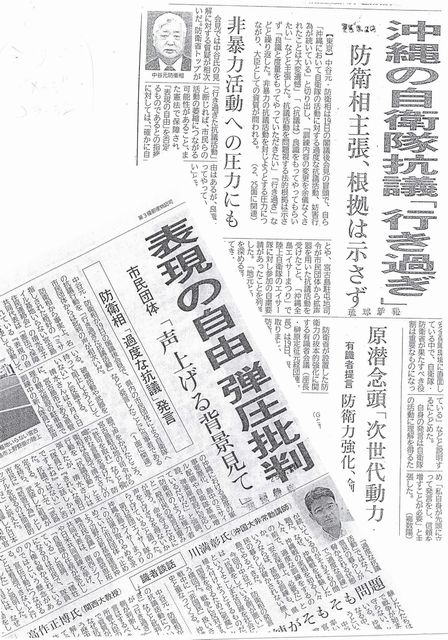 【ミリタリー/中谷防衛相が市民の抗議活動を非難/旧日本軍体質の継承は沖縄戦を再来させる】