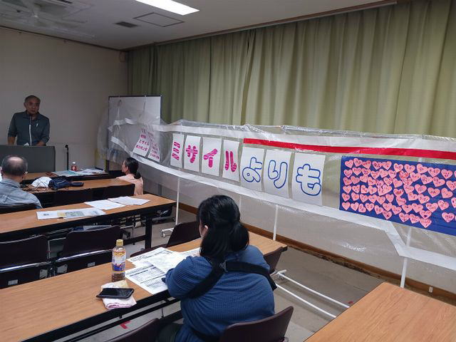 討議では、品川区で進められている「敵基地攻撃ミサイル配備中止を国に求める請願」区議会採択をめざす運動などが紹介され、ガザの飢餓と虐殺を止めるためのAFZ(アパルトヘイトのない空間)登録のアピールもあった。