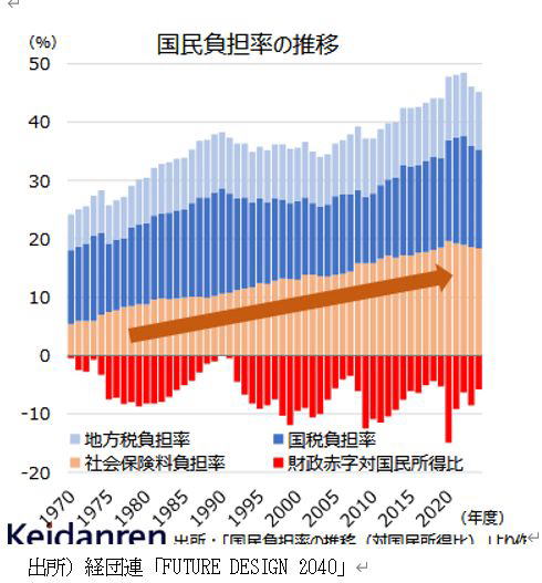 財界も社会保険料を問題にする。経団連は昨年12月、報告書「FUTURE DESIGN 2040」を発表し、「柱となる6つの施策」の1番目に全世代型社会保障を位置付けた。「全世代型」とは、現役世代が社会保険料を多く負担(=損をしている)とし、負担を是正せよ(=高齢者がもっと負担すべき)との主張を意味する。
