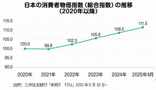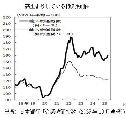 円安による輸入原材料価格の上昇がインフレの大きな要因の一つだ。輸入物価指数(24年度)は石油・石炭・天然ガスが20年比で約1・76倍、飲食料品・食料用農産物も1・33倍となっており、そのために物価が高騰している。