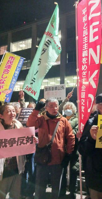 「憲法9条を壊すな!実行委員会」などが呼びかけた11月25日の首相官邸前緊急行動には500人が結集した。弁護士の内田雅敏さんは「いま中台両岸の民衆が望んでいるのは現状の維持。日中の軍拡派は互いに不信感を投げかけ合う敵対的相互依存関係にある。日中両国人民は決して戦争を望んでいないと訴えていこう」とスピーチ。参加者は「戦争反対」「高市発言今すぐ撤回」「島じまを戦場にするな」「長射程ミサイル配備をやめろ」「戦争あおる首相はいらない」「退陣!退陣!高市政権」とコールを繰り返した。