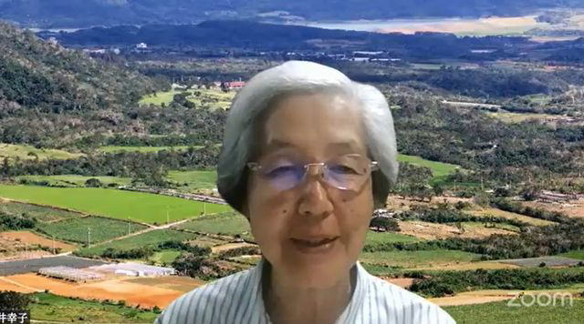 12月1日、広島集会では「石垣島の平和と自然を守る市民連絡会」事務局長の藤井幸子さんが報告した。