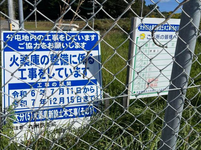 大分分屯地の工事標識(池田年宏氏のSNSから引用) |