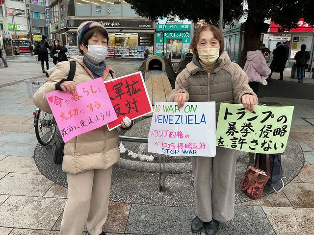 東京・北区の「やさしいまちをつくる会きたく」は1月7日、ベネズエラに軍事侵攻し、マドゥロ大統領を拉致したトランプ大統領の暴挙に対し抗議のスタンディング。「絶対に許さない」と怒りのアピールを行った。