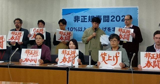 26春闘では25年と同水準の10%以上の賃上げを要求する。非正規雇用労働者が個人加盟する33の労働組合が参加予定で、それぞれ企業や自治体などに要求する。今年は、春闘の賃上げ後や最低賃金改定の時期に、企業が人件費抑制のために非正規労働者のシフトカットをしたり労働強化をすることを許さない方針を新たに加えた。企業側が「総額人件費」の枠を固定したまま賃上げに応じる場合、帳尻を合わせるために労働時間を短縮させるケースが相次いでいるからだ。そのために「総額人件費引き上げ」をスローガンに加えた。
