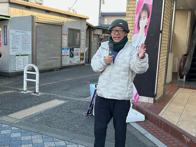 終了後は、駅前で街頭宣伝活動。あるがさんは、市民に声をかけられれば、演説途中でもマイクを置いて丁寧に話を聞く。「あるがさんに任せるよ」「応援しているよ」との声を笑顔で迎えた。また、総選挙について「国民生活を支える予算を通すという首相の責任を放棄した」と高市首相への批判も展開した。