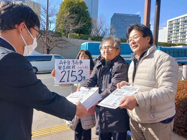 「市民の連帯で東アジアから戦争を止めよう」と対面で集めたZHAP(ZENKO辺野古反基地プロジェクト)第3次署名2153筆を内閣府へ提出。自民党本部は過剰警備で迎え、「存立危機事態発言撤回」「首相辞任」を求める請願の受け取りを拒否した。