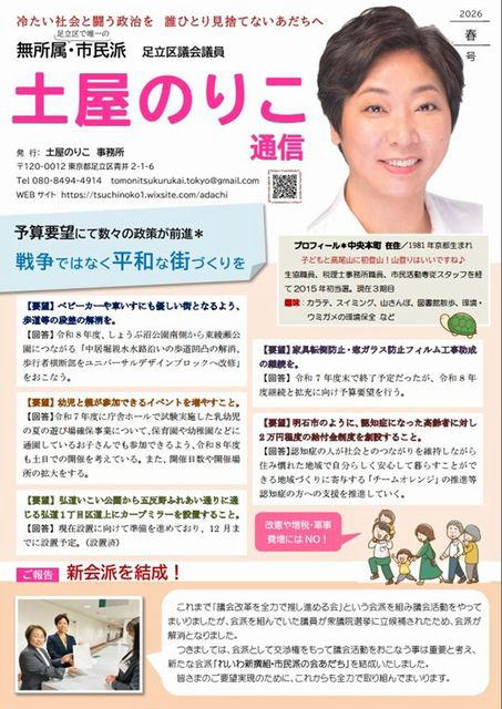 【議会を変える/東京都足立区議 土屋のりこ/土屋のりこ通信をご紹介】