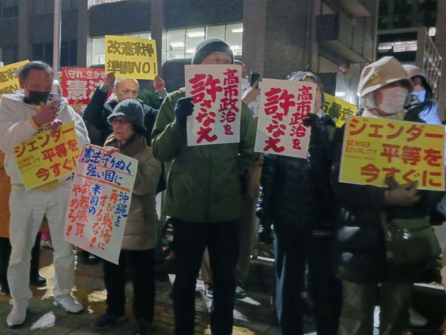 憲法9条を壊すな!実行委員会は2月10日、首相官邸前で「高市政権の改憲と戦争準備に反対する緊急行動」を実施。デモ初参加という人たちを含む400人以上が駆けつけた。